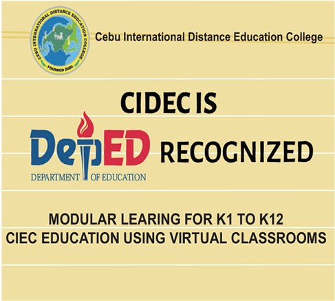 DepEd: Recognition No. 05 s. 2006Bureau of Immigration: AAFS No. MCL-2008-149SEC Registration No. C200000410Sangguniang Panlalawagan Resolution No. 1446-2007Satellite Certificate Issued by DepEd Region 7 August 9, 2007 by Pablo M. Antopina, LL. B, Ph.D., Director IV, CESO IIIDepEd permit to Operate K1 to K12 No. 5, 2016 Issued January 12, 2016 (GAS) General Academic StrandESL CIDEC Special Program for all foreign, non-English speaking students of CIDEC, DepEd, 10/12/2012